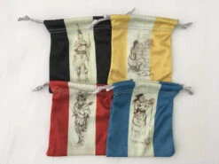 A cotton drawstring bag measuring 13cm x 16xm (approx. 5″ x 6″).