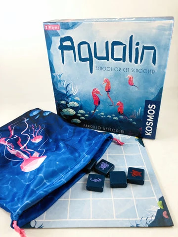 A single 21cm x 22cm microfiber for use with the Aqualin. Featuring new artwork from the Sophie Rekasowski (the game’s artist), this bag can be used as both a storage bag and drawbag for the tiles in the game, and still fits within the game box with the insert.