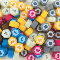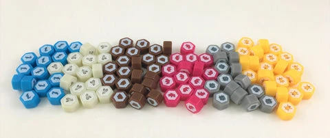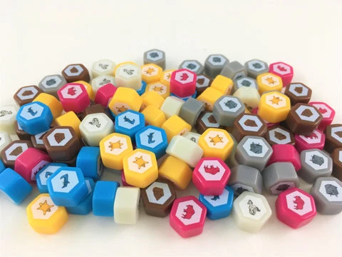Looking to explore in style? Upgrade your copy of Lewis & Clark with these plastic GeekUp bits! Made to size to match the original wooden hexagons, these pieces also feature the original sticker artwork on both sides (which was offered as a giveaway at SPIEL in 2015, and was available for print or for sale thereafter).