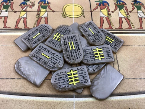 Reiner Knizia is one of the most well-known game designers in the world, and his classic auction game Ra has been in print continually for over 12 years. Celebrate this classic game with this exquisite set of GeekUp tiles and VP tokens, as well as a custom drawbag featuring artwork from the game. Please note --> this GeekUp set uses the original artwork by Franz Vohwinkel, found in every printing of the game EXCEPT for the most recent (by Windrider Games).