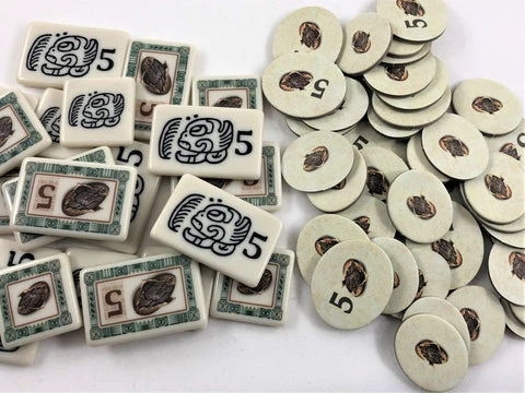 This GeekUp set contains 40 tokens to replace the cardboard cacao tokens found in Teotihuacan,: